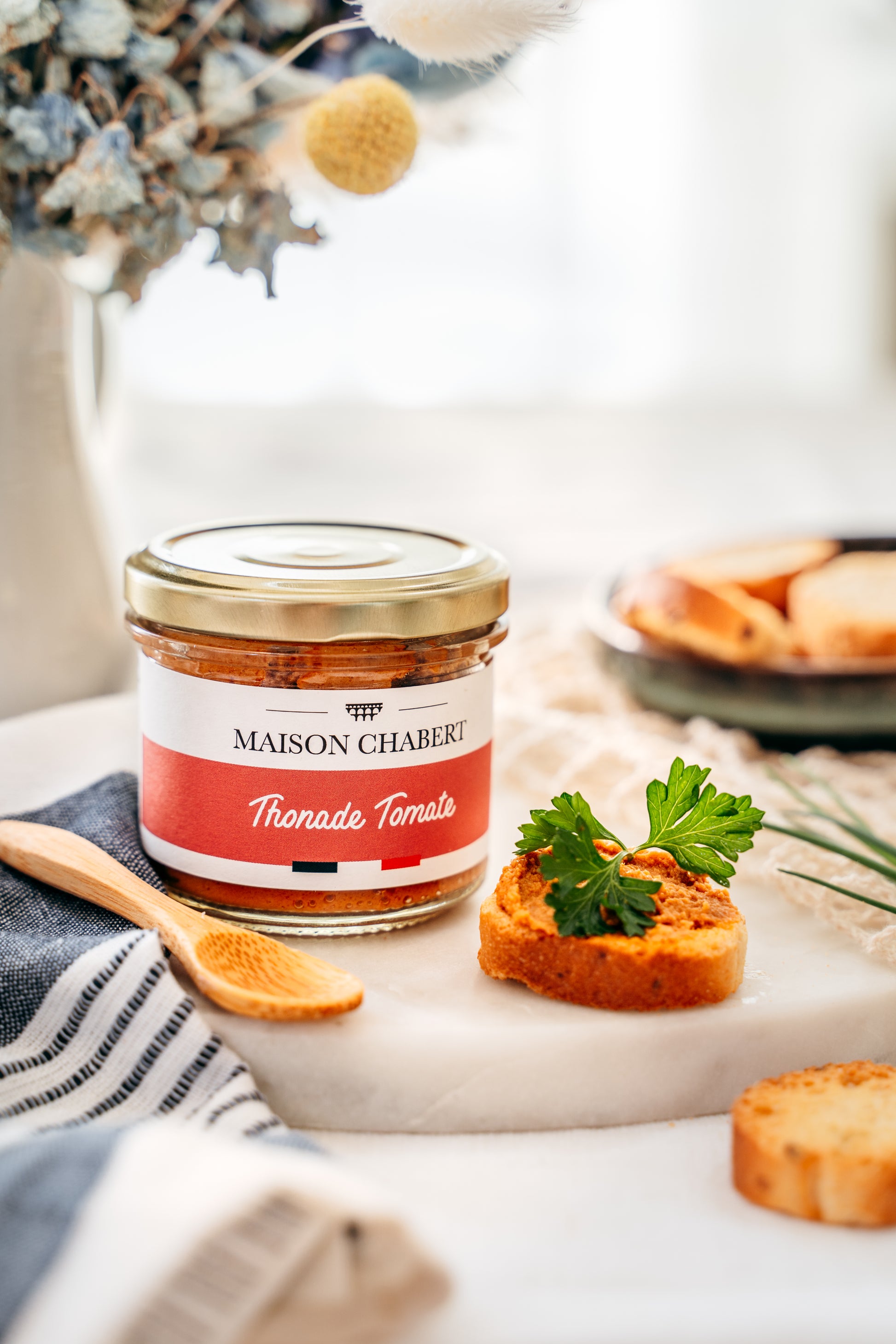 Élaborée artisanalement en Provence, cette spécialité tartinable associe 50 % de thon et 25 % de tomates séchées pour un goût généreux et équilibré.